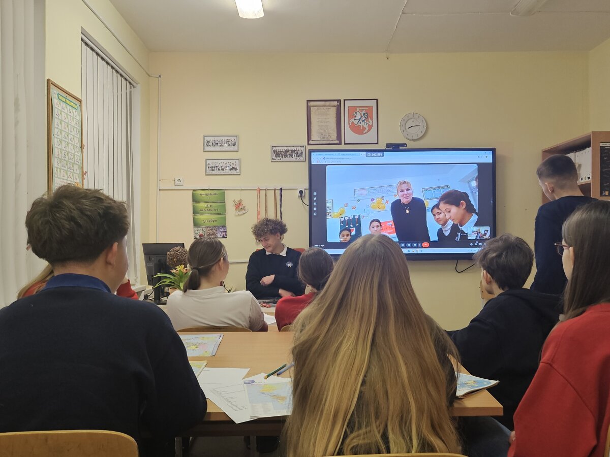 Antradienį, gruodžio 16, mūsų gimnazijos 8d klasės mokiniai dalyvavo integruotoje rusų (II užsienio) kalbos – geografijos online pamokoje „Atspėk, kokioje šalyje aš gyvenu“ su Uzbekistano vidurinės mokyklos 7 ir 9 klasių mokinių grupe. Reikėjo pateikiant 10 klausimų, į kuriuos galima buvo atsakyti tik TAIP arba NE atspėti, kokioje šalyje gyvena oponentai. Šį kartą laimėjo mūsų aštuntokai.