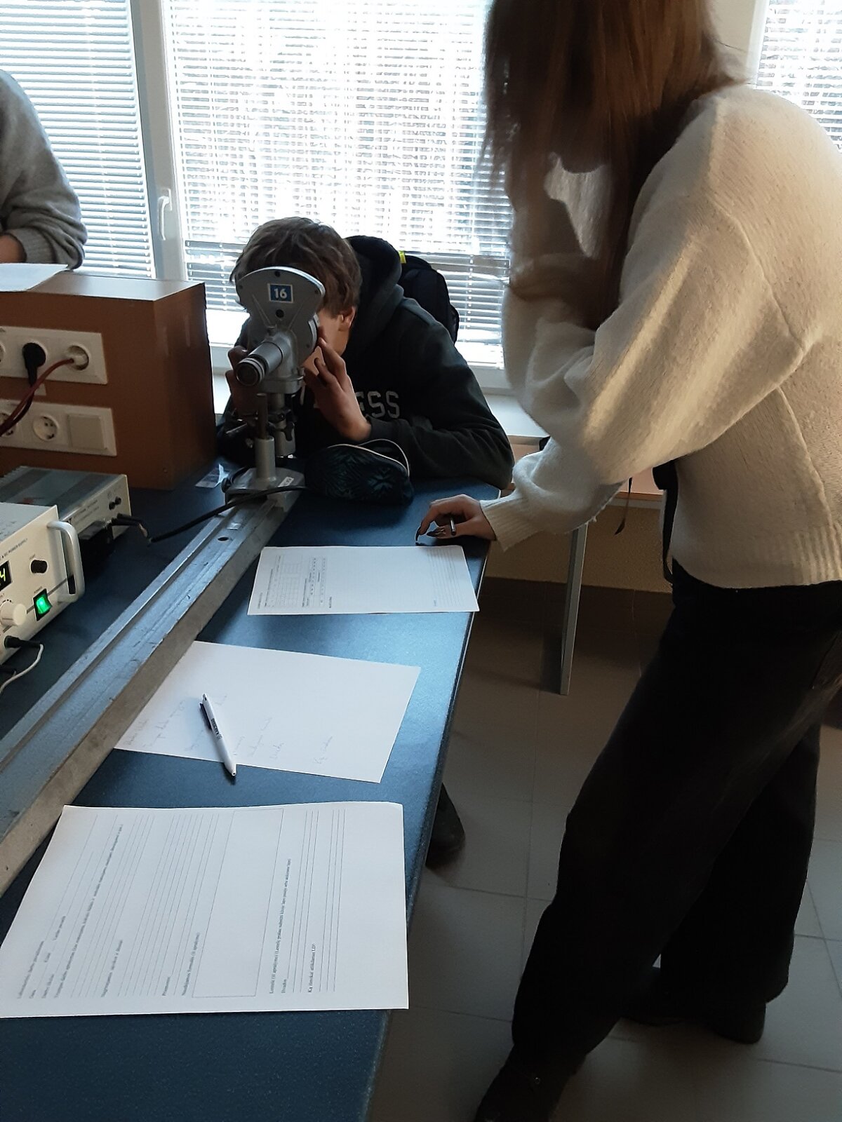 11–12 kl. mokiniai lankėsi Vilnius Tech laboratorijose. Mokiniai tyrinėjo išorinį fotoefektą, spektrus bei šviesos interferencijos ir difrakcijos reiškinius naudodami šiuolaikinius fizikos įrenginius.????