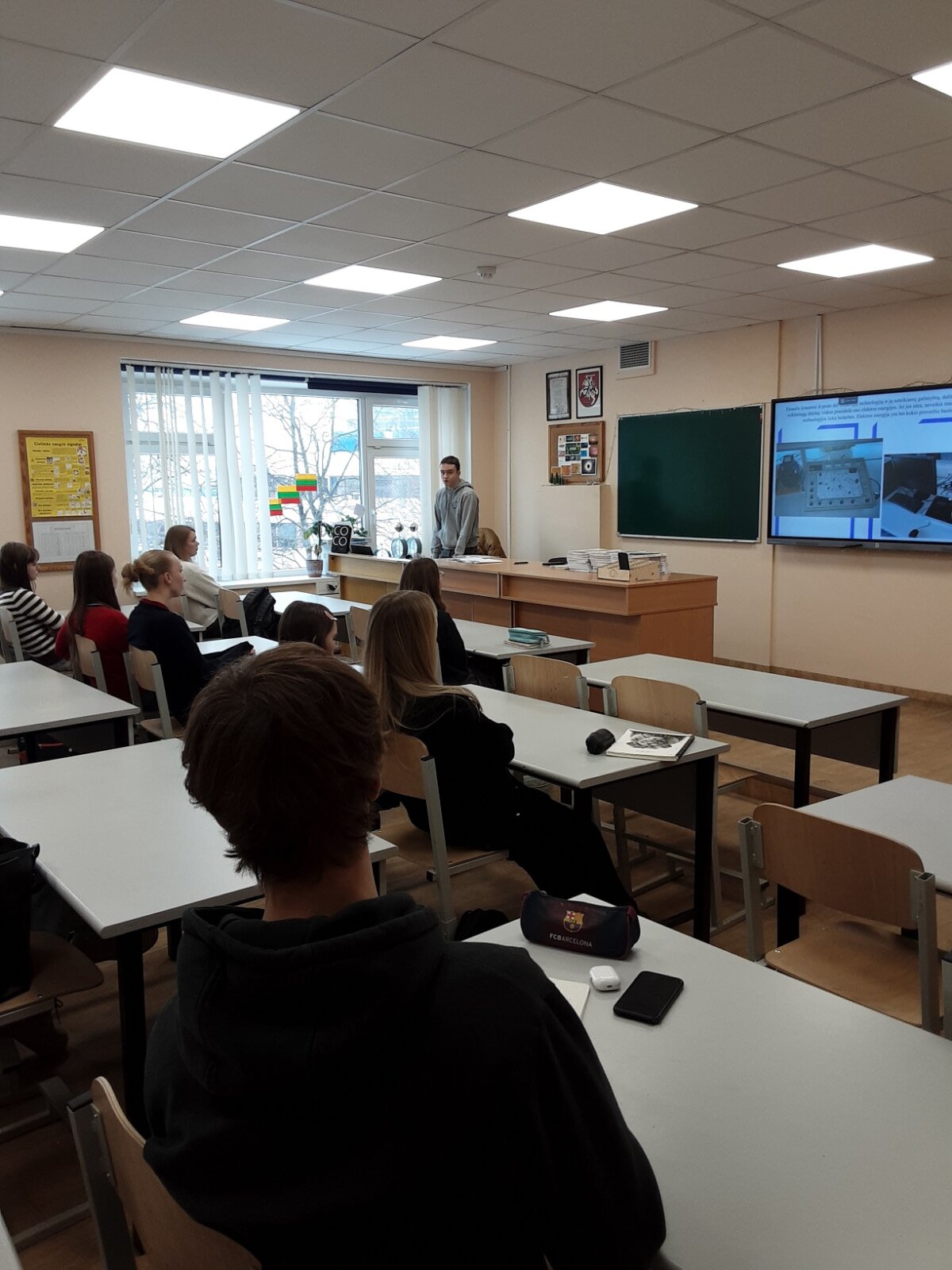 Tuo tarpu 10–11 kl. mokiniai dalyvavo susitikime su Vilnius Tech studentais, kurie papasakojo apie tvarią energiją, studijas ir karjeros galimybes. ⚡????