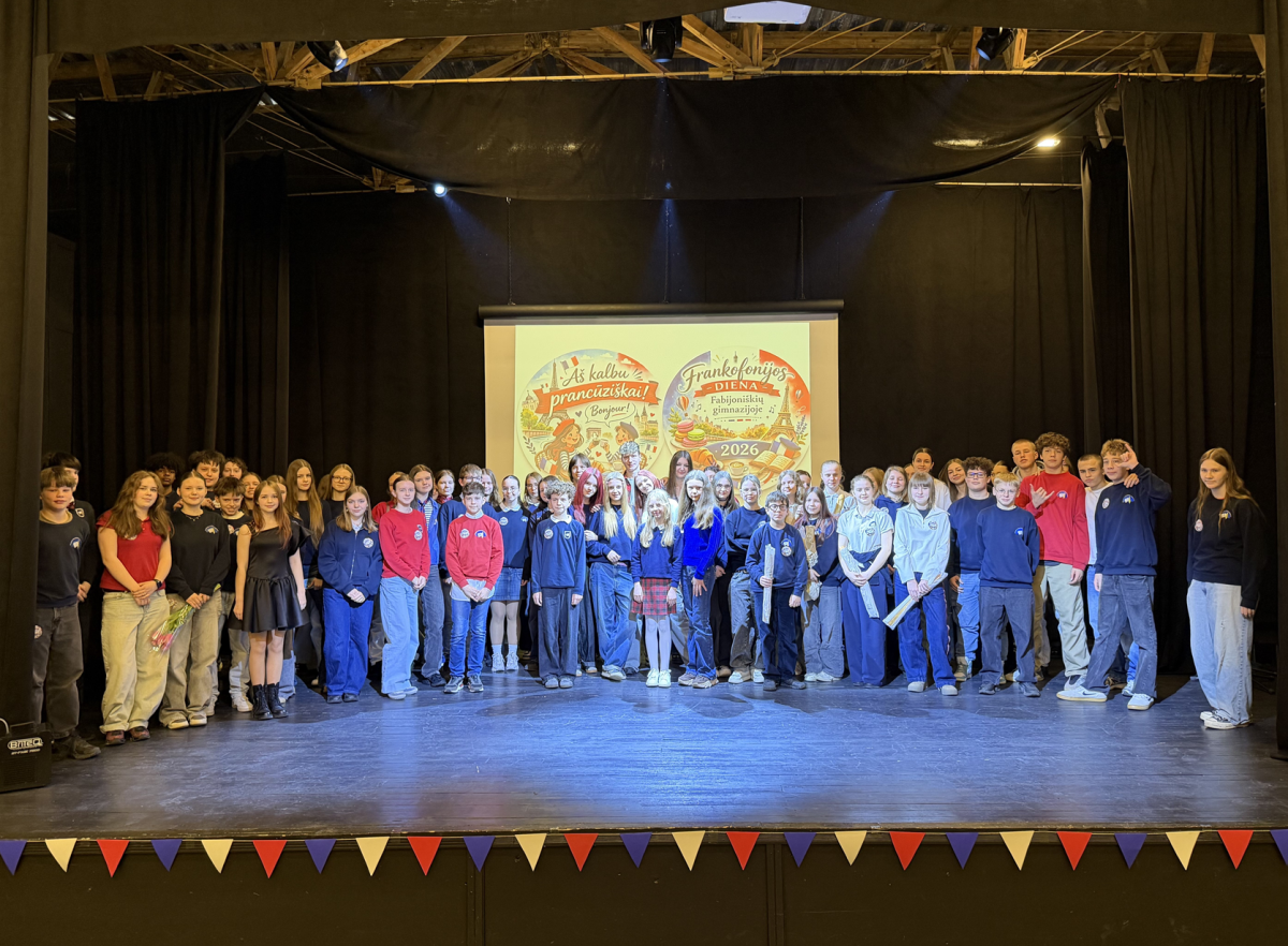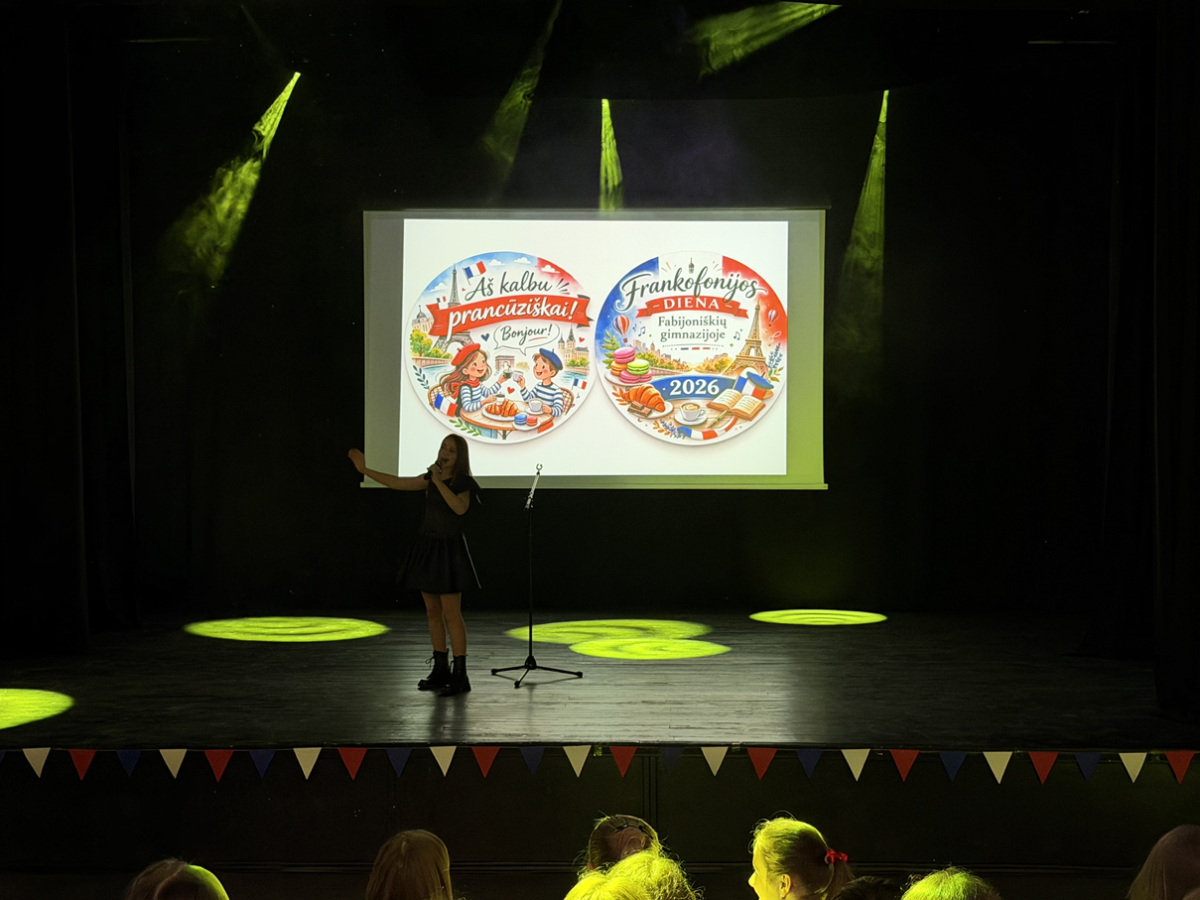 Šia proga mūsų mokykloje nuaidėjo šventė „Fêtons le français ensemble !“ (Švęskime prancūzų kalbą kartu!), subūrusi 5–9 klasių mokinius. Čia netrūko nei kūrybos, nei juoko, nei muzikos – prancūzų kalba skambėjo dainose, pristatymuose ir net drąsiuose pasirodymuose scenoje.