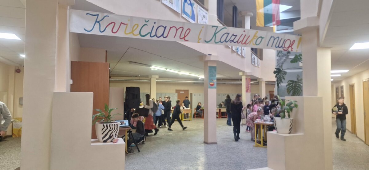 Kovo 6 dieną mūsų gimnazijoje praūžė linksma ir spalvinga Kaziuko mugė. Mokiniai pardavinėjo rankdarbius, kepinius ir kitus skanėstus. Pardavėjai kvietė prie savo stalų, siūlė pirkti, ragauti, o pirkėjai derėjosi dėl kainų. Mugėje skambėjo muzika, tvyrojo gera nuotaika.